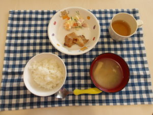 米飯 オレンジチキン ポテトサラダ みそ汁