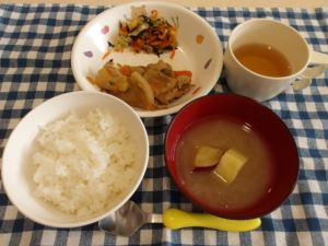米飯 豚肉と大根の炒め煮 キャベツとひじきのサラダ みそ汁