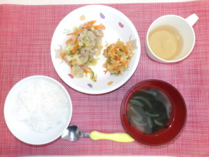 米飯 回鍋肉風 切干大根のサラダ わかめスープ