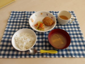 米飯 藤枝コロッケ 野菜のカレーマリネ みそ汁