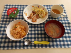 ケチャップライス ローストチキン スパゲティーサラダ コンソメスープ クリスマスゼリー