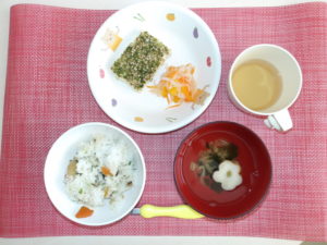 七草がゆ風ご飯 松風焼き 紅白なます すまし汁