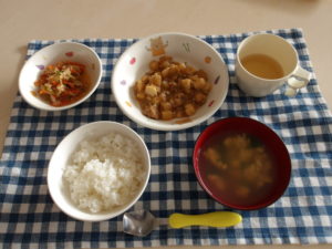 米飯 麻婆大根 中華サラダ ニラ玉スープ