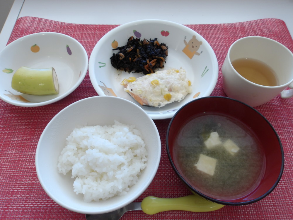 米飯 鮭のマヨネーズ焼き ひじきの煮物 みそ汁 バナナ