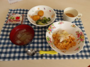 ドリア チキンナゲット ブロッコリーのツナ和え 白菜スープ タルト