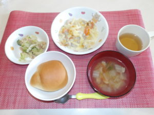 パン チキングラタン キャベツとツナのサラダ 白菜スープ