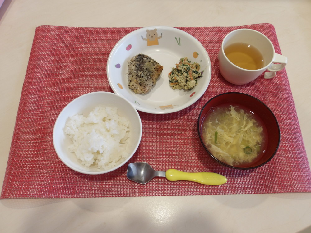 米飯 魚のゆかりパン粉焼き 青菜の白和え かきたま汁