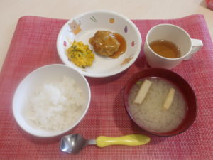 米飯 豆腐入りハンバーグ 南瓜サラダ みそ汁