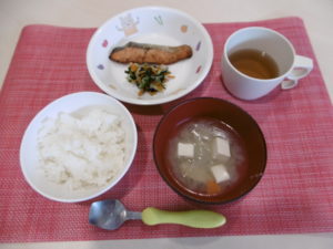 米飯  魚の和風ムニエル  磯和え  豚汁